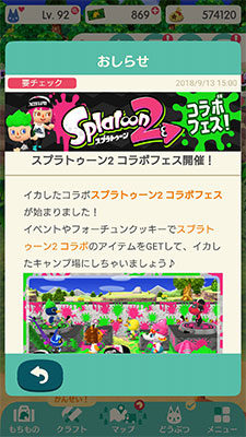 スプラトゥーン2コラボフェス【どうぶつの森 ポケットキャンプ】