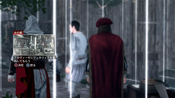 レオナルドと別れて、ヴェネチアで悪政を行うエミリオ・バルバリーゴが住むセタ宮へ様子を伺いに行きます。