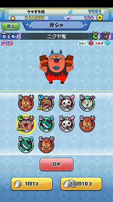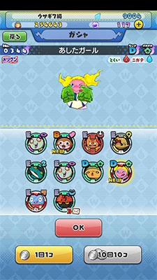 全体の結果はこんな感じ…Bサルニャン、Cなし、新しい妖怪は2体かな