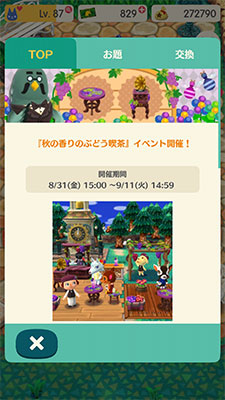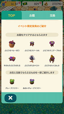 秋の香りぶどう紅茶イベント【どうぶつの森 ポケットキャンプ】 2018-09-01 mokeko どうぶつの森 ポケットキャンプ コメントを残す 夏が終わった~って思ってたら、秋イベントが始まりました! 「秋の香りぶどう紅茶」ガーデンイベントです♪ ぶどう紅茶ってなんだか美味しそう~ 育てた花に寄って来た虫を捕まえると、イベントアイテムが貰えます 秋らしくて素敵なアイテム達です 頑張らねば! 早速グレープフラワーの種を植えてみました! お花畑も秋色できれいだわ☆ ↓ ねぇゲラルトこのボタンをクリックしてみてほしいのよ☆