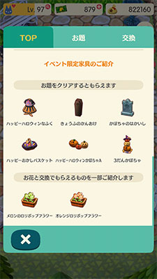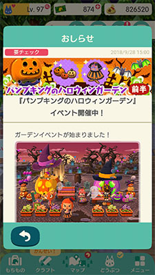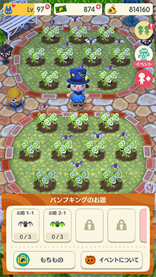 ハロウィンだ~♪【どうぶつの森 ポケットキャンプ】 2018-09-29 mokeko どうぶつの森 ポケットキャンプ コメントを残す ガーデンイベントが始まりました! 今回は「パンプキングのハロウィンガーデン」です♪ ロリポップフラワーを咲かせて、コウモリを捕まえるとハロウィンアイテムがもらえます ハロウィンアイテムはこんな感じ… 今回のお題はパンプキングからの依頼です カボチャだよカボチャ! さぁてと、頑張って花を咲かせようかしら☆ ↓ ねぇゲラルトこのボタンをクリックしてみてほしいのよ☆