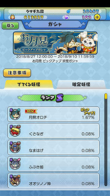 お月見ガシャの内容はこんな感じ…